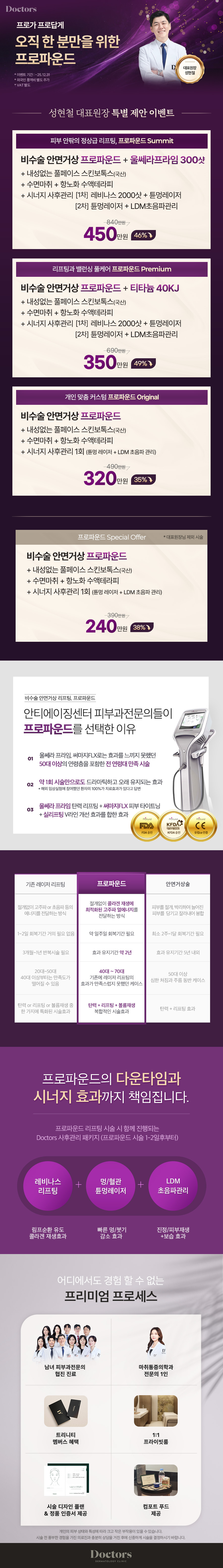 • 프로파운드 + 울쎄라 프라임 300샷 + 내성 적은 풀페이스 스킨보톡스(국산) + 수면마취 + 항노화 수액 테라피 + 시너지 사후관리 2회